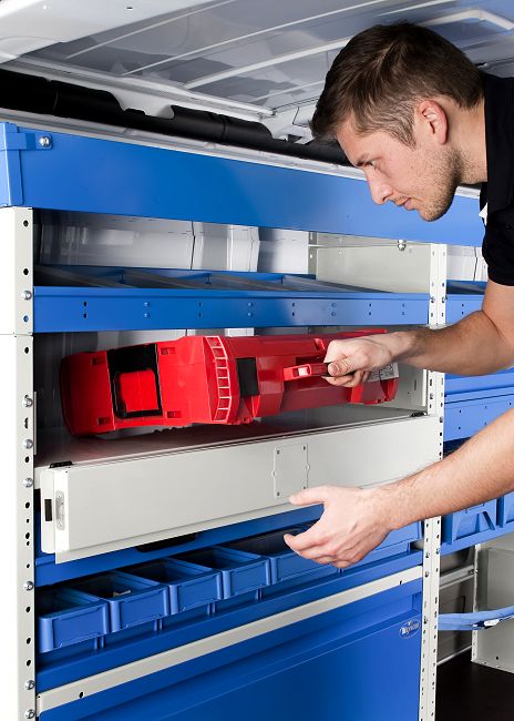 Syncro System mobile workshops are based on robust but lightweight racking products and accessories. And because everything is completely modular and easy to combine, Syncro racking systems can be installed in all models of van. Made from top quality materials like plywood, aluminum and high strength steel, Syncro products are virtually indestructible too and can even be re-used when you change your van. Syncro racking is shaped by laser cutting machines for maximum accuracy and formed using the latest generation of CNC bending machines.