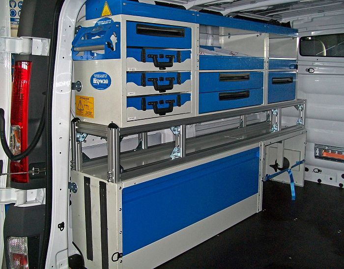 All Syncro System components are specially designed for use in vans. Because they are made from a combination of aluminum and high strength steel, they are light in weight but amazingly strong. This makes them the ideal solution to the problems faced by tradesmen and professionals working away from base.